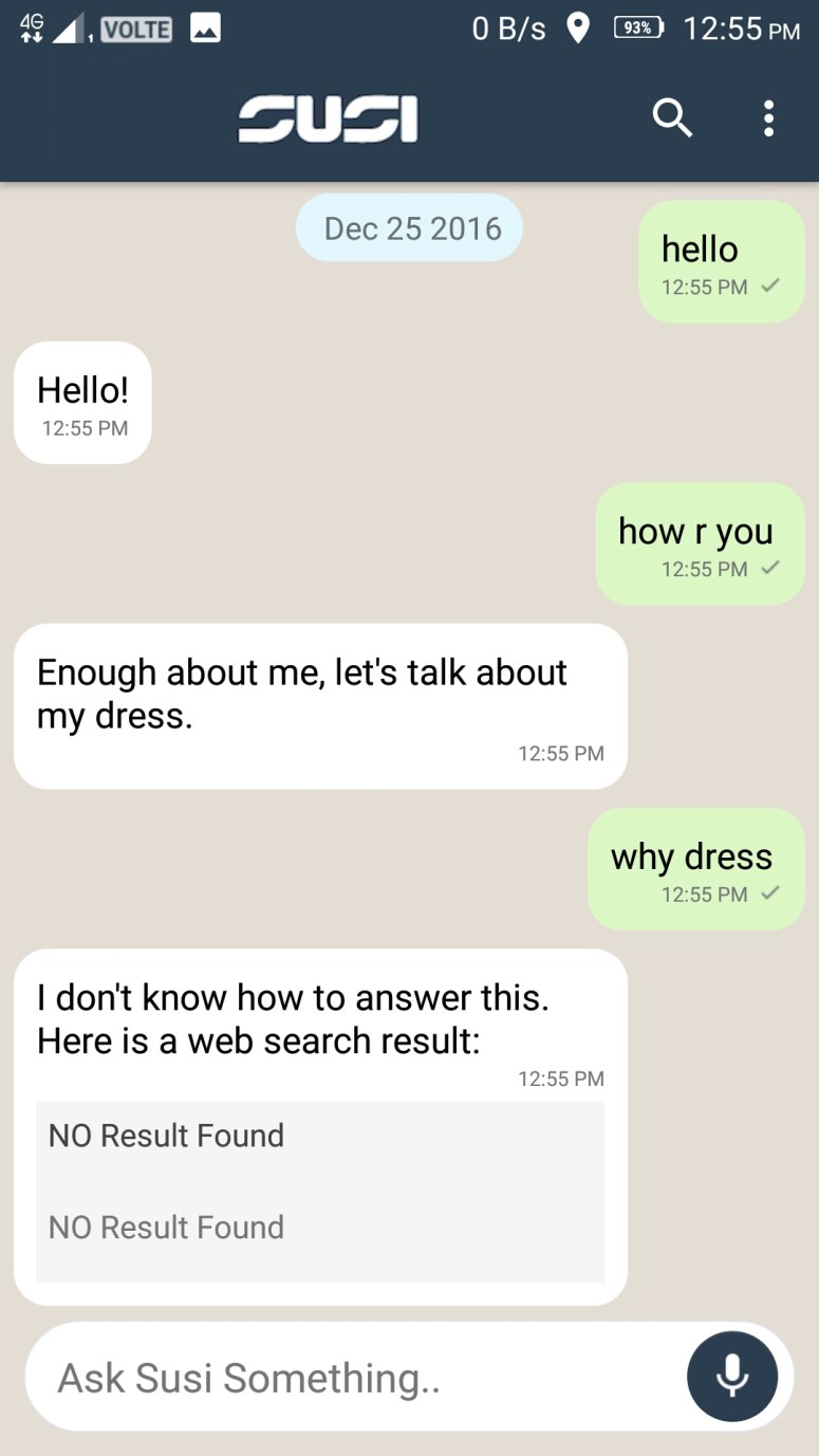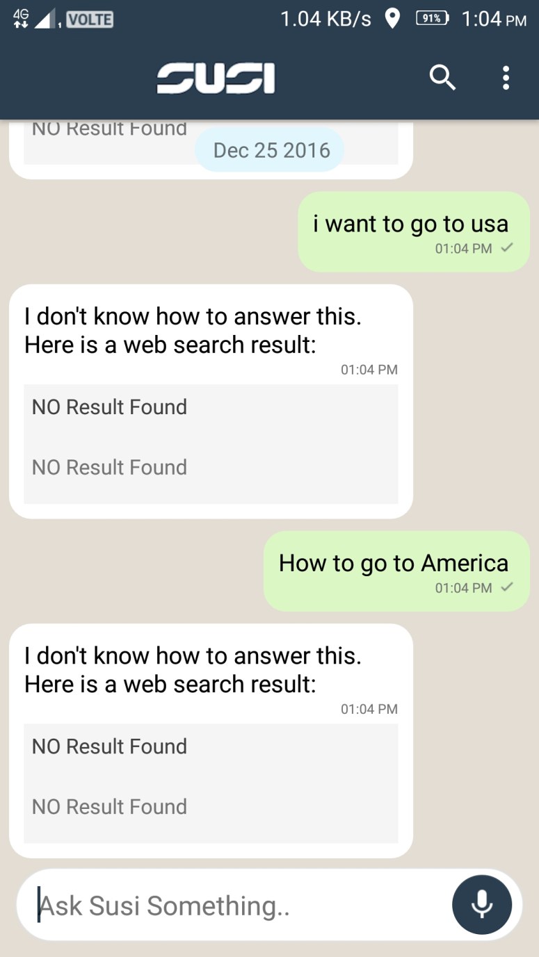 If I ask some thing it says no web results found even if it is a simple question.
